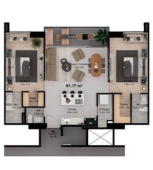 – Portería 24 horas, imponente lobby de recepción, Coworking y amplio salón social para que vivas más cómodo